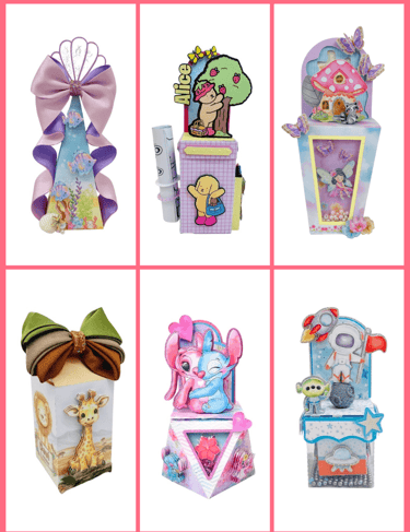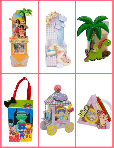 São mais de 100 moldes prontos de caixas e lembrancinhas para você escolher, todos editáveis no app gratuito Canva.
